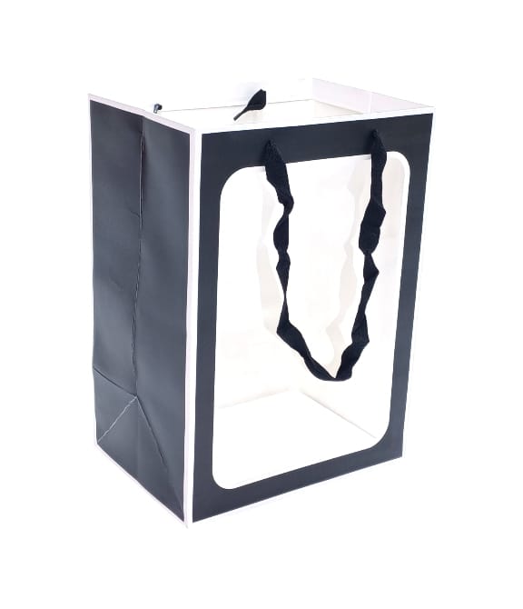 حقيبة مربعة ذات واجهة بيضاء شفافة، تناسب عموديًا، 12 قطعة مقاس 35 سم × 25 سم × 18 سم