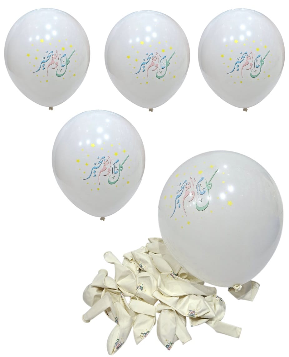 30 pieces of Eid al-Fitr balloons, white, 12 inches